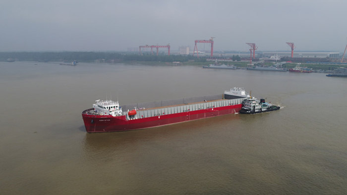 武船集團(tuán)雙柳武船承建的該型船共四艘,1號(hào)船已于2018年5月16日在江蘇省南通市順利交付。13000DWT甲板運(yùn)輸船是國(guó)內(nèi)首個(gè)具備完全自主知識(shí)產(chǎn)權(quán)的散貨船,采用海工院自主研發(fā)的雙尾鰭專利船型,全鋼制焊接結(jié)構(gòu),總長(zhǎng)約130米、型寬26米、型深8米,載重量13000噸,設(shè)兩臺(tái)主機(jī),單機(jī)最大功率1600KW,航速10.2節(jié)。在設(shè)計(jì)方面,海工院通過優(yōu)化線型設(shè)計(jì),其性能參數(shù)與國(guó)際同類型船舶相比節(jié)能提效14.1%,優(yōu)勢(shì)明顯,并通過優(yōu)化船舶綜合布置,細(xì)化施工設(shè)計(jì),成功攻克淺吃水型船舶重量重心與穩(wěn)性控制、薄板焊接變形、船舶減振降噪等難題。該項(xiàng)目質(zhì)量控制上,受到船東、船檢的一致好評(píng)。