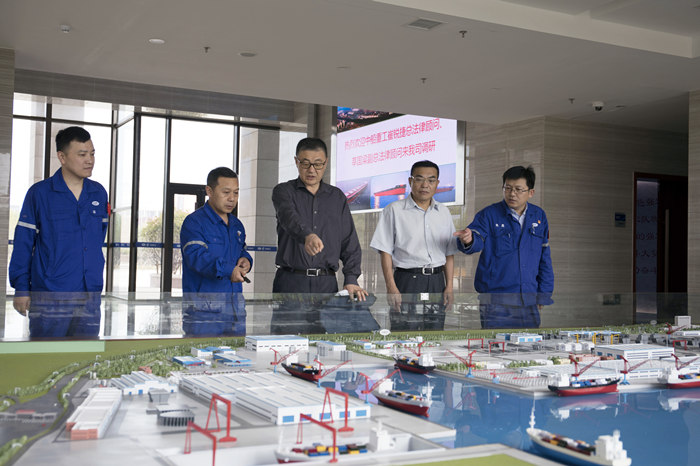 近日,中國船舶重工集團有限公司總法律顧問崔銳捷和副總法律顧問莘國梁一行來青島地區調研,武船集團北船重工總經理韓兵、常務副總經理劉杰、武船集團副總法律顧問沈軍予以熱情接待,并就法治船舶建設落實情況進行了匯報。