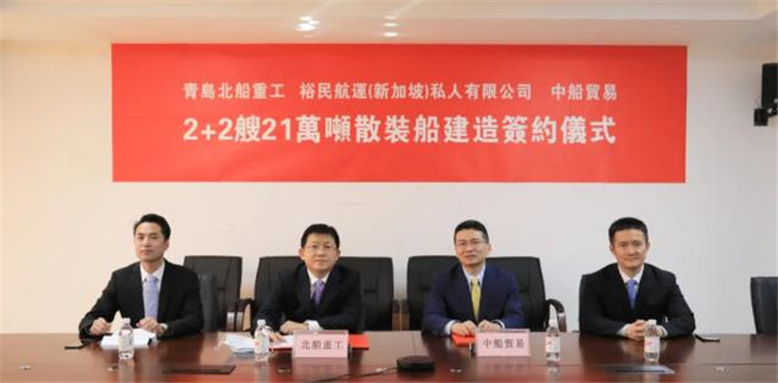 1月29日,中國(guó)船舶工業(yè)貿(mào)易有限公司、武船集團(tuán)北船重工與裕民航運(yùn)股份有限公司在青島、臺(tái)北兩地,通過視頻形式舉行了2+2艘21萬噸散貨船項(xiàng)目云簽約儀式。這是繼32.5萬噸礦砂船項(xiàng)目后又一次重大戰(zhàn)略合作,充分體現(xiàn)了船東給予的認(rèn)可和支持!