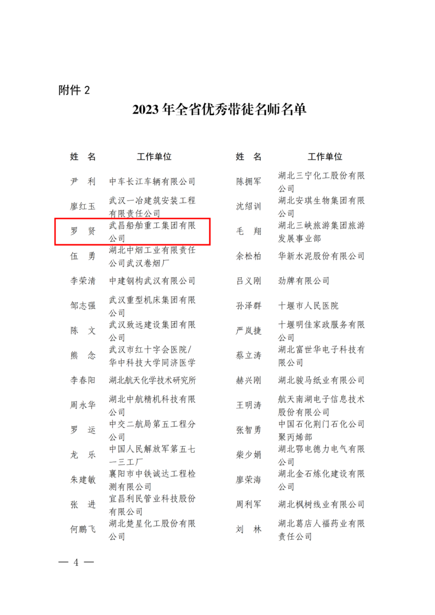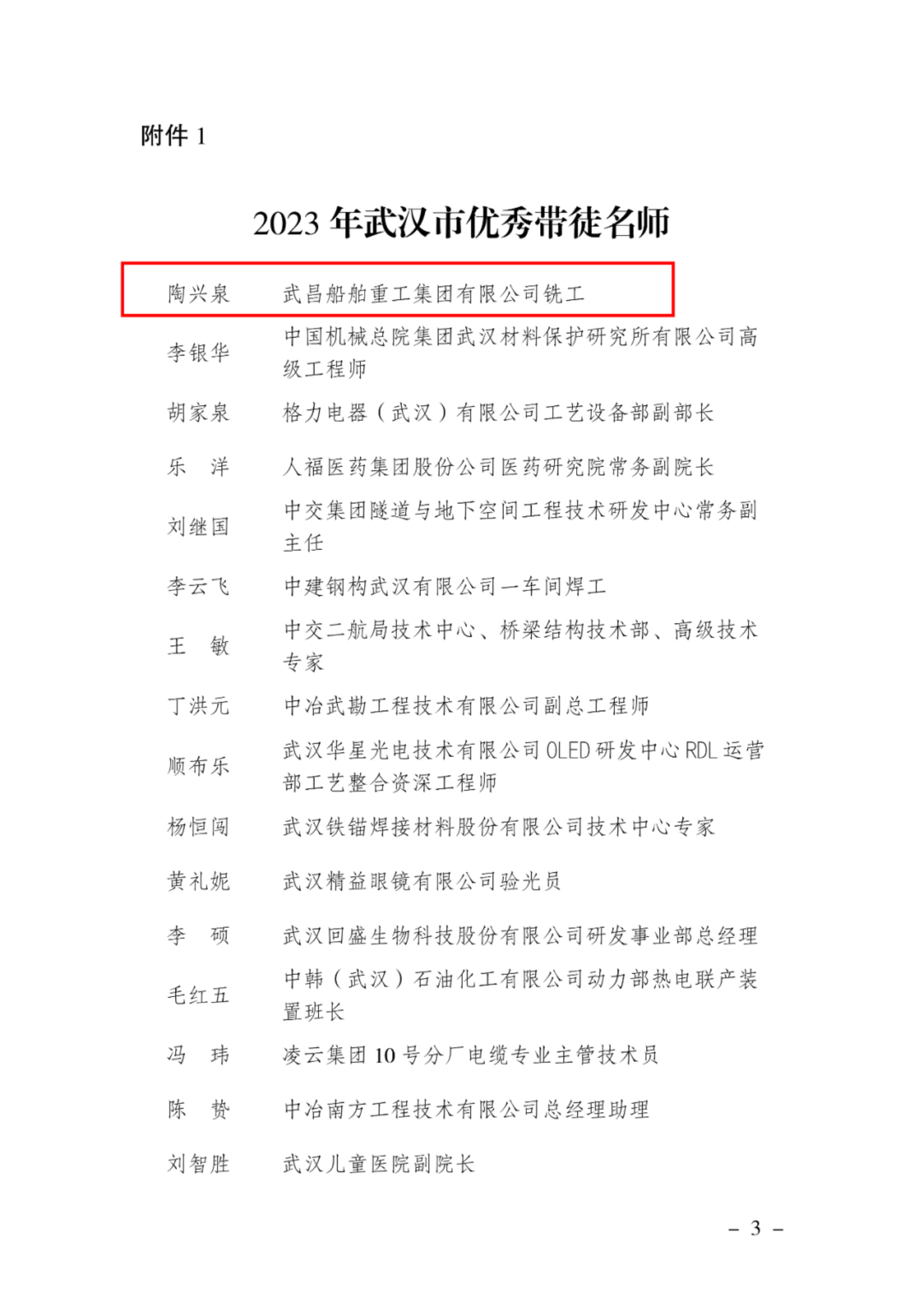 武漢市優(yōu)秀帶徒名師