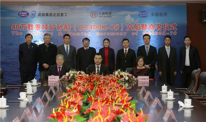 王國海在致辭中指出,今天是改革開放40周年紀(jì)念日,在這個美好的日子,各方來賓歡聚在美麗的青島西海岸,共同見證武船集團(tuán)北船重工和中國船舶重工國際貿(mào)易有限公司為工銀金融租賃有限公司建造的40萬噸超大型礦砂船7號船交船暨命名儀式,共同為改革開放40周年獻(xiàn)禮。40萬噸礦砂船7號船是武船集團(tuán)為工銀租賃交付的第三艘船,建造過程中,在船東、船級社等各方的共同幫助和努力下,調(diào)配優(yōu)質(zhì)資源,組建專業(yè)化的項目管理團(tuán)隊,秉承工匠精神,持續(xù)優(yōu)化建造工藝,改進(jìn)生產(chǎn)流程,提高生產(chǎn)效率,夯實產(chǎn)品質(zhì)量,提高出塢完整性,實現(xiàn)了碼頭舾裝調(diào)試周期63天的系列船碼頭周期最短的記錄,航速、油耗等各項指標(biāo)全部達(dá)到或超過合同和設(shè)計要求,為船東打造了又一艘具有優(yōu)良經(jīng)濟(jì)性和環(huán)保性的高品質(zhì)船舶。船舶交付后,武船集團(tuán)北船重工將全力做好交付船舶的售后服務(wù)和后續(xù)船的建造工作,并乘改革開放40年的東風(fēng),與工銀租賃一道,攜手并進(jìn),共謀發(fā)展,共同續(xù)寫互利共贏的華麗新篇章。