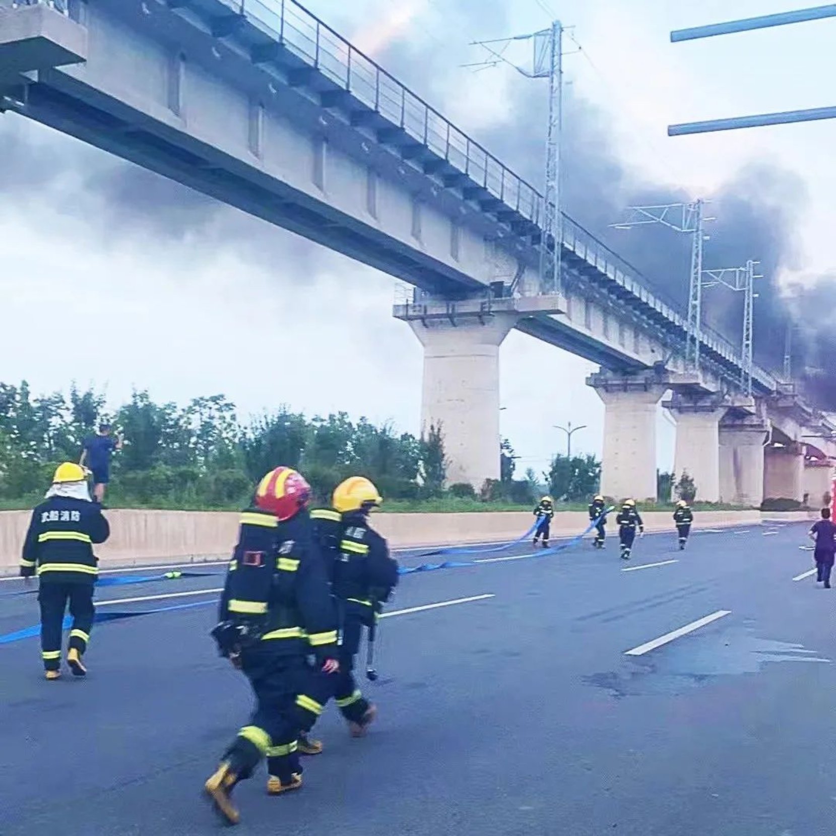 現(xiàn)場火勢很猛,輪胎燃燒的火焰烘烤著汽油罐體,隨時(shí)都有爆炸的可能。寬闊的馬路上沒有掩體,隊(duì)員們知道爆炸會傷及自身,但職責(zé)使命大于一切,敢于赴湯蹈火、不怕犧牲是消防隊(duì)員最基本的職業(yè)素質(zhì)。