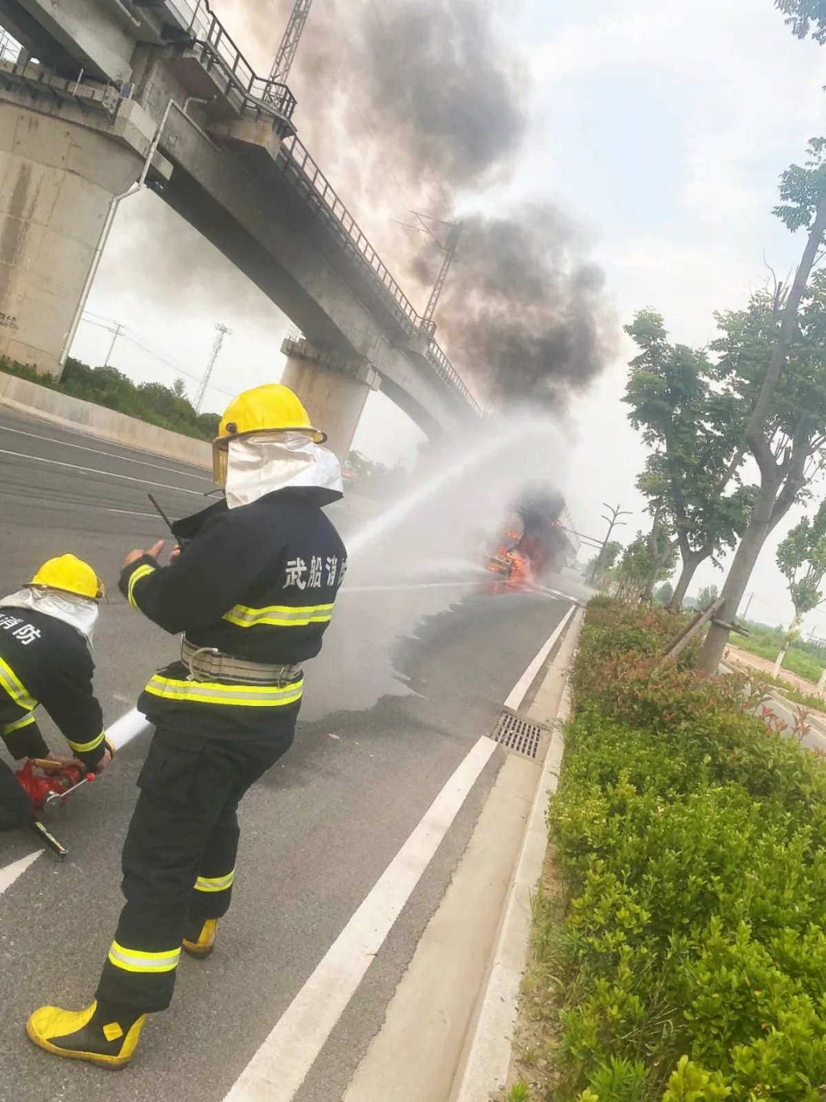 6月12日晚19時(shí),一輛汽油罐車在星谷大道上燃燒,武昌造船消防隊(duì)接到新洲區(qū)消防大隊(duì)的緊急出動命令,迅速趕赴現(xiàn)場。