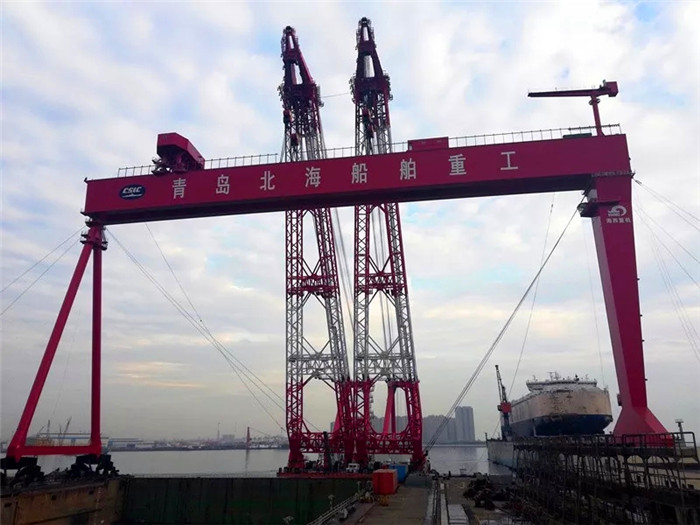 項(xiàng)目實(shí)施過程中,北船重工項(xiàng)目部在各級(jí)領(lǐng)導(dǎo)的支持和各部門人員的大力配合下,精心組織策劃,面對(duì)今年暴雨大風(fēng)天氣頻繁和大型活動(dòng)影響等諸多不利因素,通過不斷優(yōu)化施工工藝,做好工序銜接,加班加點(diǎn)搶工期。在原南塢墻拆除中首次采用繩鋸切割拆除的新工藝,僅用12天時(shí)間完成了長(zhǎng)70米、高13米、厚度達(dá)到7米的塢墻拆除和清理。500噸龍門吊三大件浮吊安裝受天氣、海況、超高空作業(yè)等因素影響大,大型構(gòu)件封固和安裝中存在很大的風(fēng)險(xiǎn),主梁與剛性腿和柔性腿的高空精確對(duì)位也是項(xiàng)目的重要難點(diǎn),其中柔性鉸定位塊間隙只有2mm;項(xiàng)目部人員組織多次評(píng)審論證,反復(fù)討論安裝方案細(xì)節(jié)和安全保障措施,通過精心組織,500噸龍門起重機(jī)主梁順利一鉤到位,僅用一天時(shí)間就完成了2200噸主梁在76米高空的對(duì)位,安裝過程的安全和效率得到了保證。