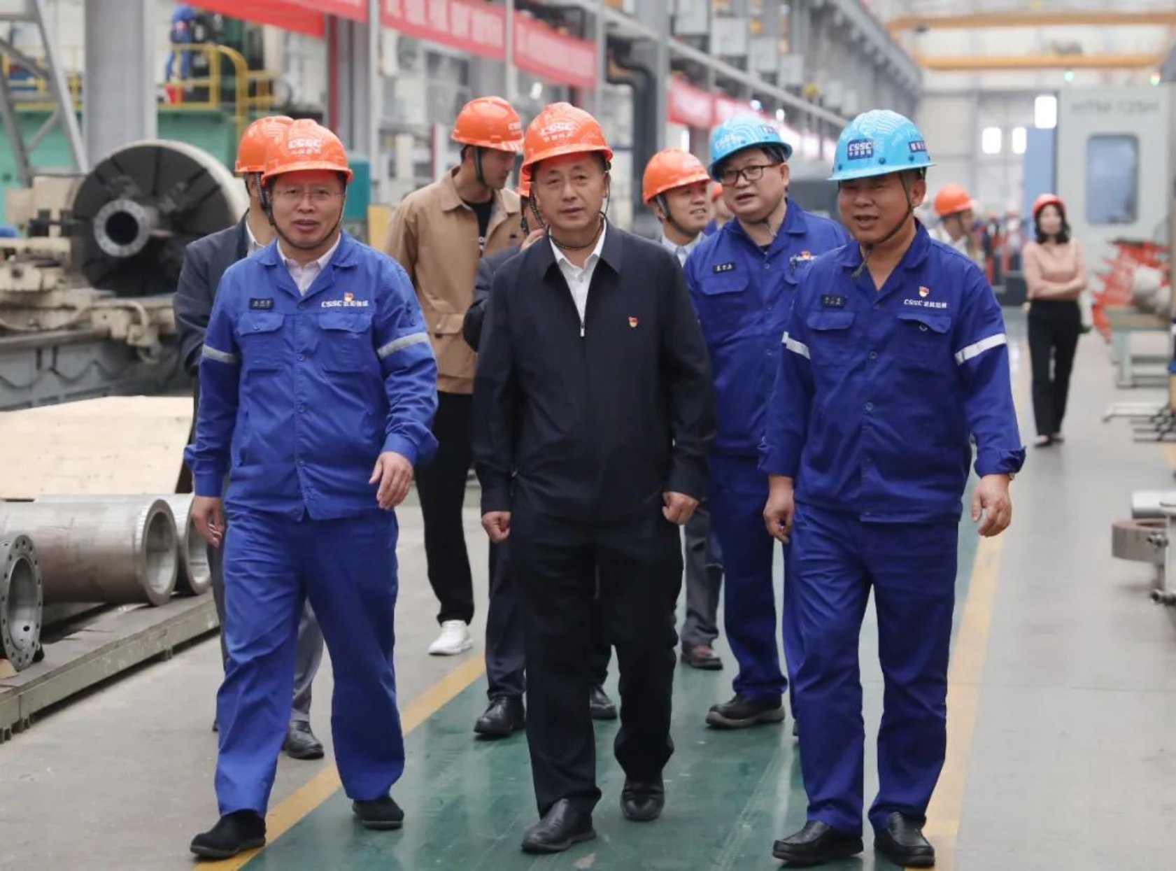 陳紅山一行首先來到了武昌造船雙柳廠區(qū)偉人廣場瞻仰毛主席銅像,隨后深入車間一線,參觀了武昌造船機電公司輕型加工車間生產現(xiàn)場、黨建活動陣地和勞模工作室。
