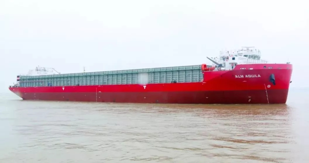 該型船總長約130米、型寬26米、型深8米,載重量13000噸,設兩臺主機,單機最大功率1600KW,航速10.4節(jié),為無限航區(qū)自航駁船,全鋼制焊接結構,主要用于煤炭、礦石等貨物的運輸。該型船在原13000噸甲板運輸船船型的基礎上增加了艏側推、壓載水處理裝置,同時主機燃油升級為輕柴油。從設計源頭上大幅提高了船舶的運營經(jīng)濟性,其快速性和裝載能力也領先于國際同類船舶,是國際新一代高效綠色節(jié)能甲板運輸船。