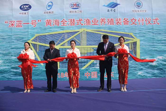 5月4日,中船重工武船集團為山東省日照市萬澤豐漁業有限公司打造的我國首座“深海漁場”――深藍1號在山東省青島市建成交付。“深藍1號”即將運往日照市黃海水域,用于深遠海漁業養殖,它的投用將開創全球溫暖海域養殖三文魚的先河。交付儀式在日照、青島兩個會場同時進行。