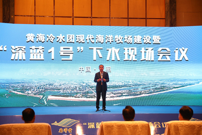 交付儀式上,日照市委常委、副市長劉兆亮,中船重工副總經理何紀武,山東省人民政府副省長孫述濤,國家農業農村部副部長于康震先后致辭。山東省海洋與漁業廳廳長王守信為“深藍1號”頒發證書,于康震宣布“深藍1號”正式起航。國家農業農村部漁業漁政管理局局長張顯良、中國海洋大學校長于志剛、武船集團總經理陳?降攘斕疾渭詠桓兌鞘健?