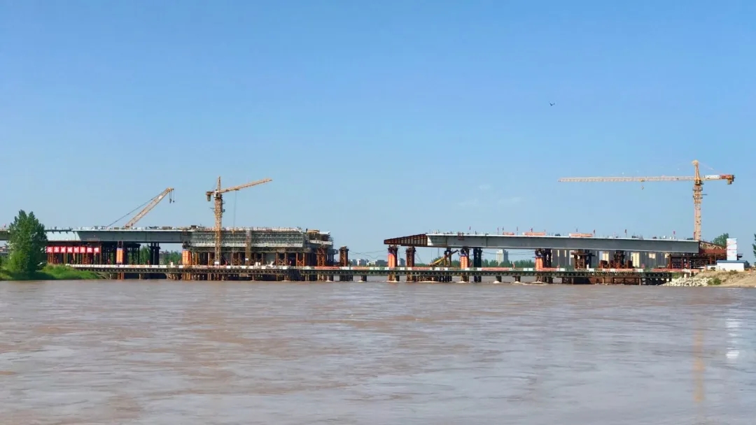 中衛(wèi)南站黃河大橋位于寧夏回族自治區(qū)的中衛(wèi)市機場大道與平安西路交叉處,線路全長1.84千米,武船重工股份承擔該橋16#-20#橋墩范圍內(nèi)的鋼結(jié)構(gòu)施工及架設(shè),處于黃河流域水流湍急的河段,施工難度較大,施工風險較高。為此,武船重工股份收集了歷年水文資料以及多方請教,預(yù)判“洪峰”的到來期,同時對水中的八組臨時支架進行全面加固,制定了專項施工計劃,增加施工人員,加快施工進度,最終在“洪峰”來臨之前,完成了鋼箱梁頂推工作。