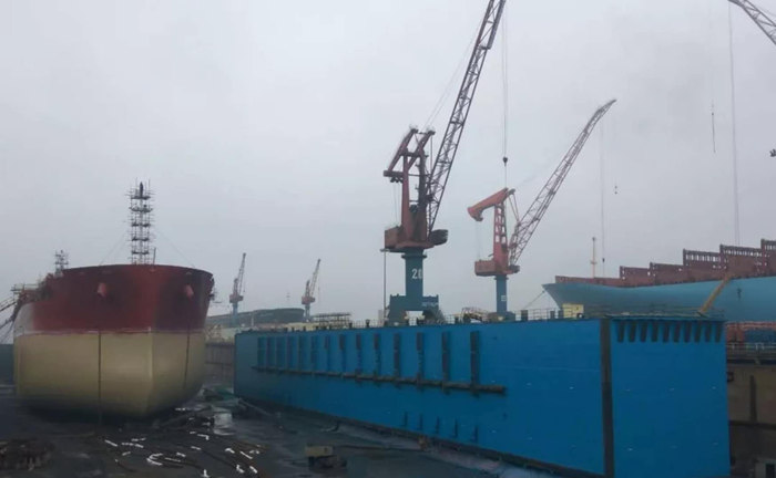 5月15日,武船集團北船重工承制的馬士基E系列埃斯特爾集裝箱改裝項目在北船重工青島武船大塢完成塢內改裝任務并順利出塢,該船為北船重工修船分廠承接馬士基系列改裝及常規塢修的第106艘船舶,也是新北船統籌利用大塢資源以來,在青島武船進行塢內施工的第5艘大型船舶。