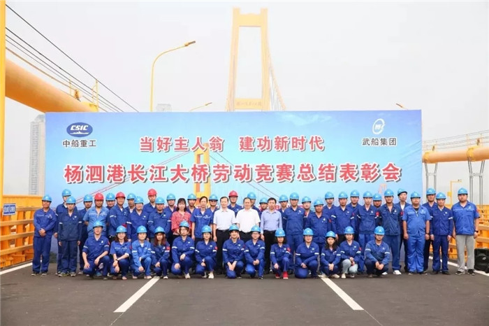 武船重工股份先后在楊泗港大橋上開展了“獻禮十九大 大戰(zhàn)120天”專項勞動競賽、聯合武漢市總工會開展了“當好主人翁 建功新時代”勞動競賽活動,先后創(chuàng)下了“單個項目單日發(fā)運5100噸”“36天完成全橋節(jié)段吊裝”等新紀錄。