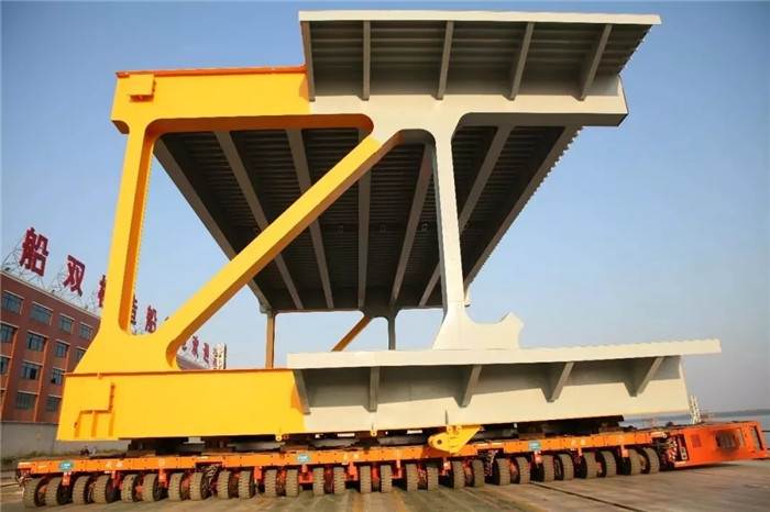 在發(fā)運環(huán)節(jié),武船重工股份對船臺大排進行了改造,優(yōu)化了節(jié)段下水方案,采用多軸組合式模塊車頂托節(jié)段滾裝上船,此舉為公司首次在長江流域完成的超大型雙層節(jié)段橫向滾裝裝船。