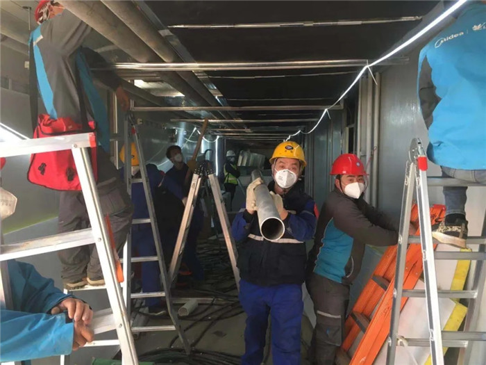 “火神山醫院每層天花板內部空間小是小了一點,燒焊燒到上面的時候,人進不去,進不去就看不到焊縫。于是,我們就在旁邊支架上,固定一塊小的反光鏡,對著鏡子繼續燒,這也是我們經常會用到的方法。其實,室內施工還算好的,雷神山醫院頂樓天臺相當于外場施工,聽說施工前一天晚上還下了大雨,可能會比較麻煩一些。”參與火神山建設的龔思帆說道。