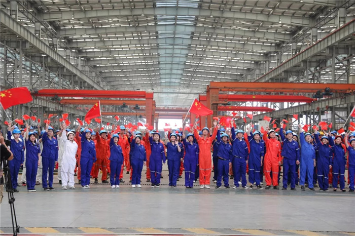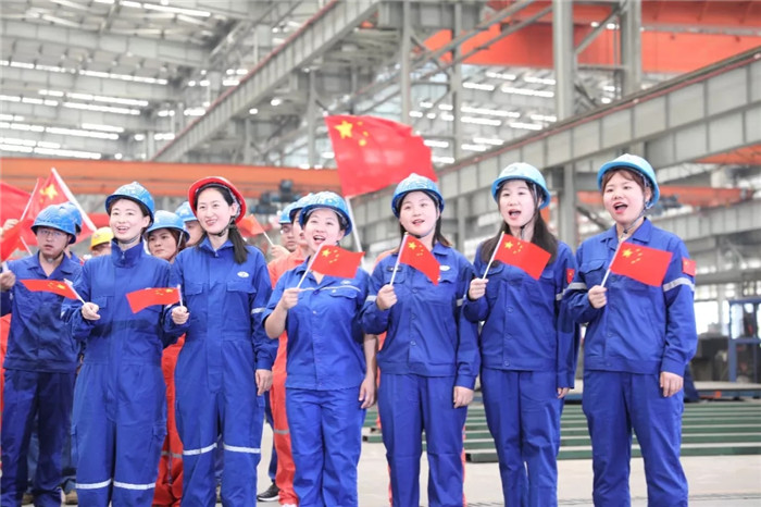 ▲武船集團(tuán)歌頌祖國(guó)快閃活動(dòng)《我和我的祖國(guó)》