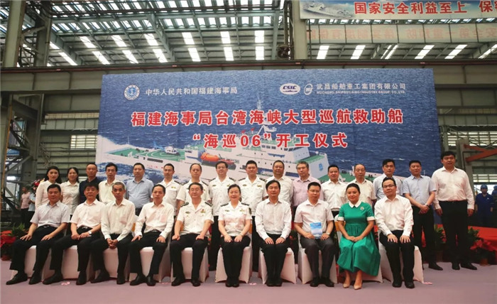 2019年5月23日上午,福建海事局臺(tái)灣海峽大型巡航救助船“海巡06”在武船集團(tuán)雙柳基地順利開(kāi)工。該船承載著保障國(guó)家重大發(fā)展戰(zhàn)略、服務(wù)臺(tái)灣海峽兩岸交流交往、提升海事履職能力的重要使命。建成后,主要用于臺(tái)灣海峽海事監(jiān)管、海上救生、船舶救助、海上船舶溢油監(jiān)測(cè)及海上應(yīng)急處理,對(duì)維護(hù)國(guó)家海洋權(quán)益、開(kāi)展國(guó)際交流合作具有重要意義。