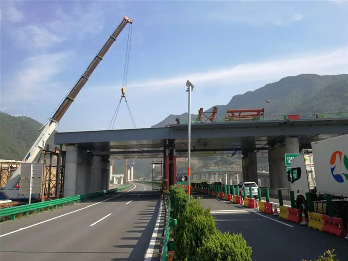 2019年6月22日,由武船重裝公司承建的濟(jì)祁高速三覺(jué)互通連接線新橋大橋單跨鋼箱拱合攏。