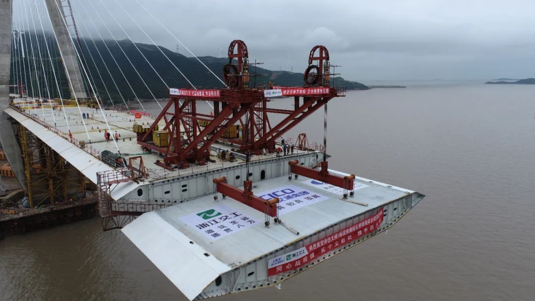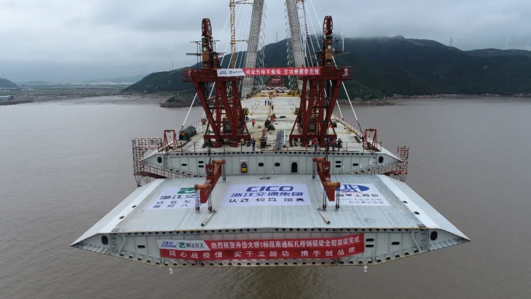 6月22日,中國船舶武船集團(tuán)武船重工股份承建的舟岱大橋DSSG01標(biāo)南通航孔橋最后一節(jié)鋼箱梁吊裝完成,精準(zhǔn)落位,南通航孔橋率先實(shí)現(xiàn)邊跨合龍,較計(jì)劃合龍時(shí)間節(jié)點(diǎn)提前了6天。