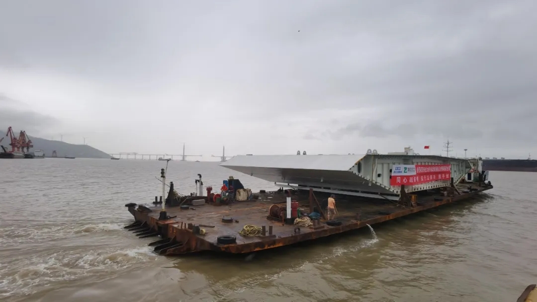 最后一個(gè)鋼箱梁節(jié)段發(fā)往橋位