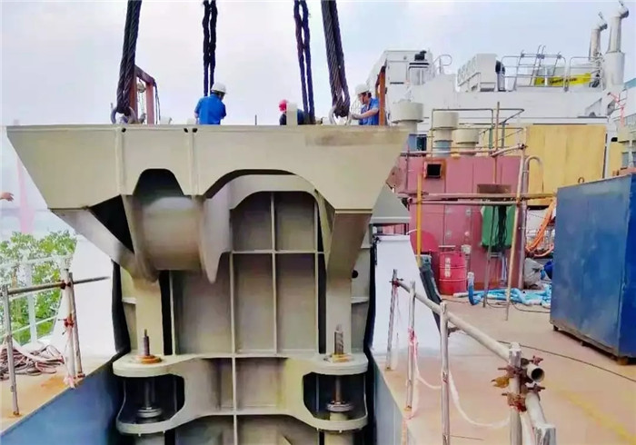 近日,國內(nèi)首艘自主設(shè)計建造的功率最強鏟斗式挖泥船?C?C長江三峽壩區(qū)航道維護(hù)鏟斗式挖泥船鋼樁定位系統(tǒng)進(jìn)入船臺安裝階段,首批多型設(shè)備順利安裝到位。
