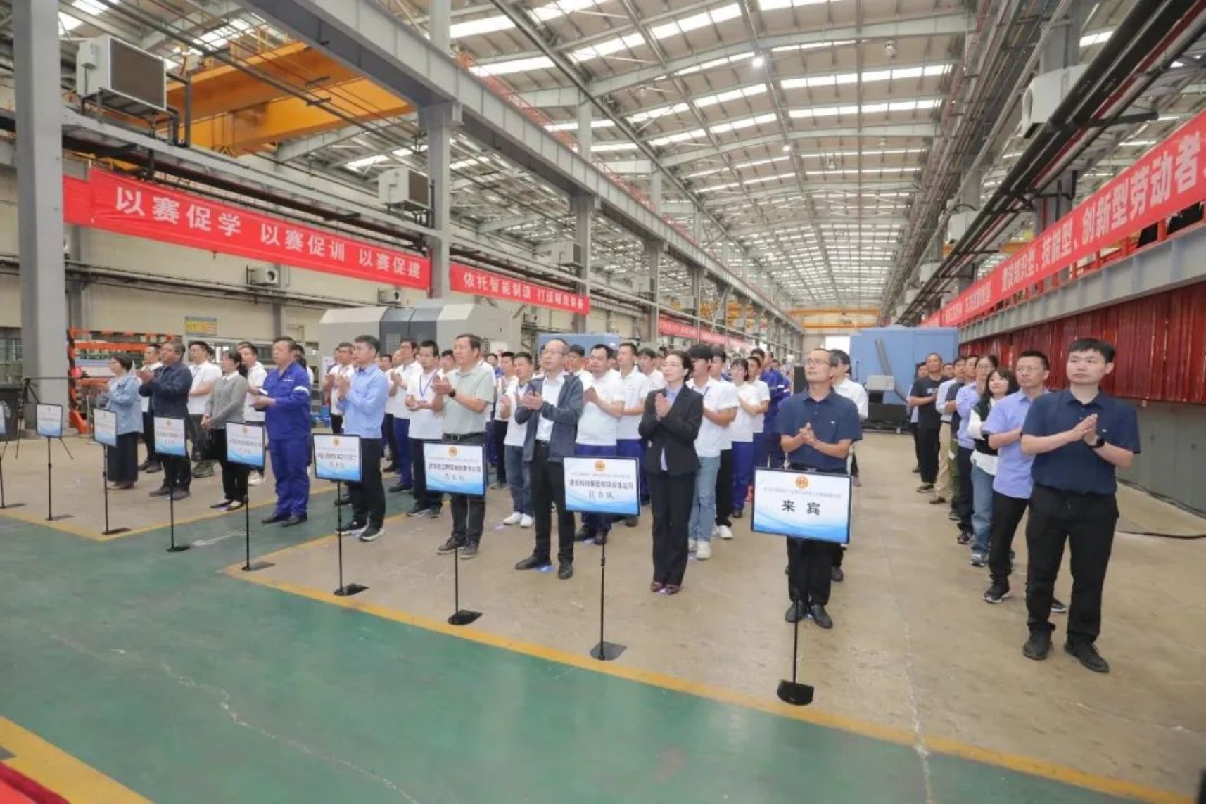 武昌造船黨委委員、副總經(jīng)理、工會主席田軍代表公司向本次大會的來賓及參賽選手表示歡迎并致辭,武漢市總工會經(jīng)濟技術和勞動保護部部長趙林松向高級技能人才創(chuàng)新工作室聯(lián)盟授牌,武漢市國防科研工會主席徐艷代表武漢市總工會致辭并宣布大賽開幕。
